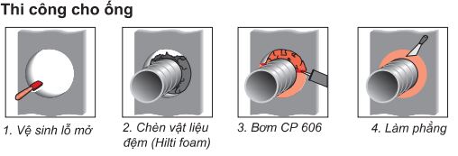 Keo Silicone chống cháy CP 606 là sản phẩm của Hilti được thi công rộng rãi trên toàn cầu, chính vì vậy quy trình thi công hết sức đơn giản. Sản phẩm được thi công chính cho hai dạng vị trí